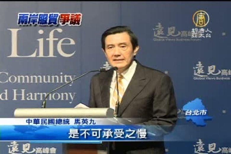 兩岸服務貿易協議簽訂以來引發軒然大波,至今仍然躺在立院,恐怕今年難以過關。馬總統今天形容服貿法案卡關是「不可承受之慢」,再次呼籲立院盡速審理。 //asset3.ntdtv.com.tw/public/uploads/video/2013/10/30/20131030-17992642.mp4 台灣要聞|兩岸服務貿易協議|服貿|立法院|馬英九總統|華人企業領袖2013-10-29 21:23:51