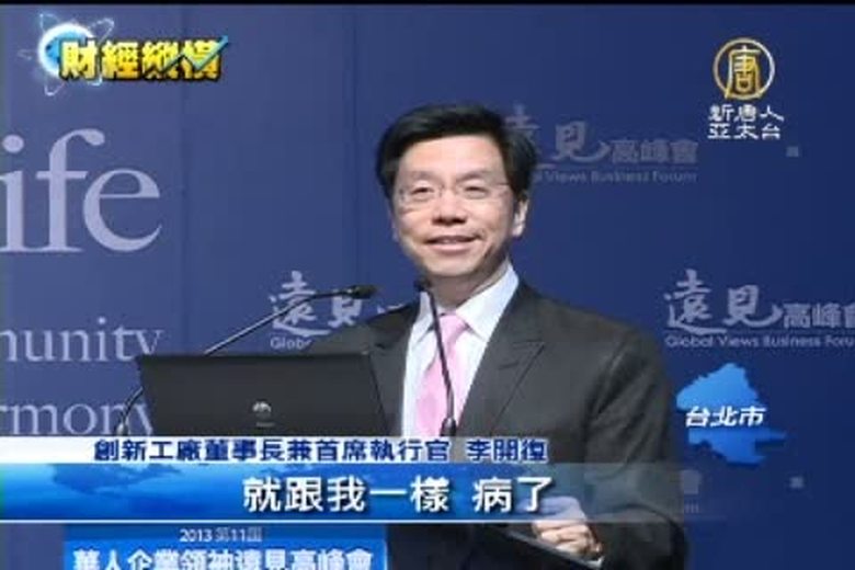 前Google大中華區總裁李開復,今年九月證實罹患癌症,今天首度公開露面,還說要在頭髮掉光之前,做最後一次演講。不過他也很嚴肅的說,台灣的高科技創新創業,跟他一樣已經病了,要下猛藥、急起直追 。 //asset2.ntdtv.com.tw/public/uploads/video/2013/10/30/20131030-17990691.mp4 財經縱橫|李開復|癌症|高科技|ICT產業|猛藥2013-10-29 21:19:21