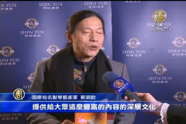 揚名國際的製琴藝術家蔡明助,22日晚上在台南文化中心,第二次觀看神韻藝術團的演出,他表示神韻晚會這麼豐富,充滿了感動還有生命力的內容,讓他內心充滿感激。 //asset1.ntdtv.com.tw/public/uploads/video/2014/02/26/20140226-19886977.mp4 神韻報導|蔡明助|名琴|製琴師|美國神韻國際藝術團|台南2014-02-25 21:25:12