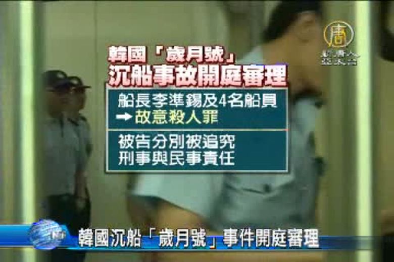 週二(10號),韓國「歲月號」沉船事件在光州中級法院正式開庭審理。涉嫌在2個月前導致沉船事故和嚴重傷亡的肇事船員,首次出庭聆訊。 //asset3.ntdtv.com.tw/public/uploads/video/2014/06/11/20140611-23680896.mp4 國際聚焦|韓國|歲月號|沉船|開庭|庭審2014-06-10 21:32:51
