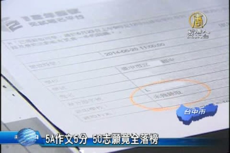 12年國教第一屆會考放榜,選填志願太複雜,造成學生高分低就,甚至高分落榜!台中一位羅同學,5科會考,拿了5個A,作文也有五級分,總成績算相當優秀,沒想到選填50個志願,結果「未獲錄取」,羅同學放聲痛哭,爸爸更心疼女兒,信心受創,痛批會考制度,亂七八糟。 //asset3.ntdtv.com.tw/public/uploads/video/2014/06/22/20140622-24166525.mp4 台灣要聞|12年國教|會考|選填志願|考生2014-06-21 21:05:01