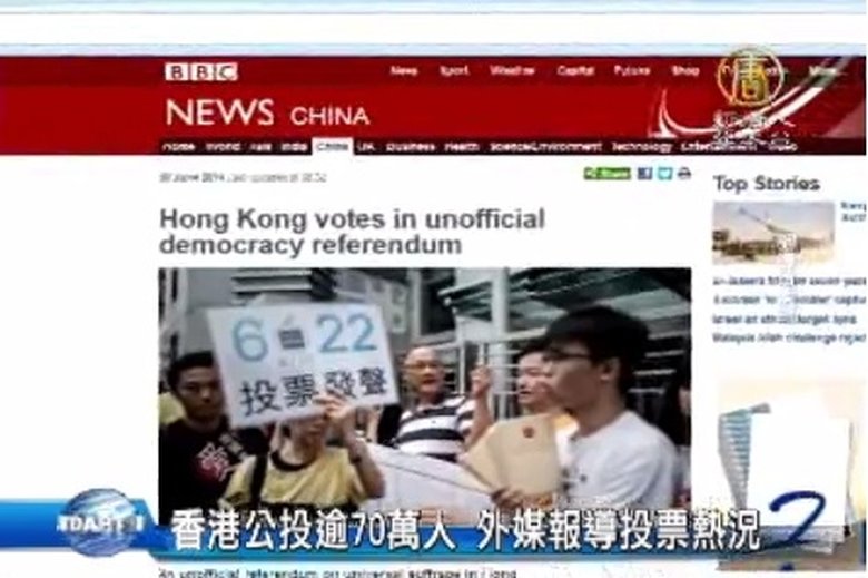 香港公投來到第四天,國際多家外媒也關注報導。包括BBC、彭博社、德國之聲等多家外媒都表示,這場由民間發起的爭取普選公投,投票熱烈程度超出主辦方的預期。 //asset1.ntdtv.com.tw/public/uploads/video/2014/06/24/20140624-24205753.mp4 國際聚焦|外媒|佔中|公投|普選|香港|最新消息2014-06-23 22:02:54
