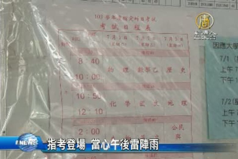 大學指考登場,今天第一天是自然組考生上陣,考物理、化學、生物等三科,上午考物理和化學,試題取材廣泛,99課綱每個單元都有入題,而且多以實驗和時事為主軸,考生普遍認為生物比較簡單。 //asset2.ntdtv.com.tw/public/uploads/video/2014/07/02/20140702-24553156.mp4 台灣要聞|大學指考|物理|化學|台中2014-07-01 21:14:27