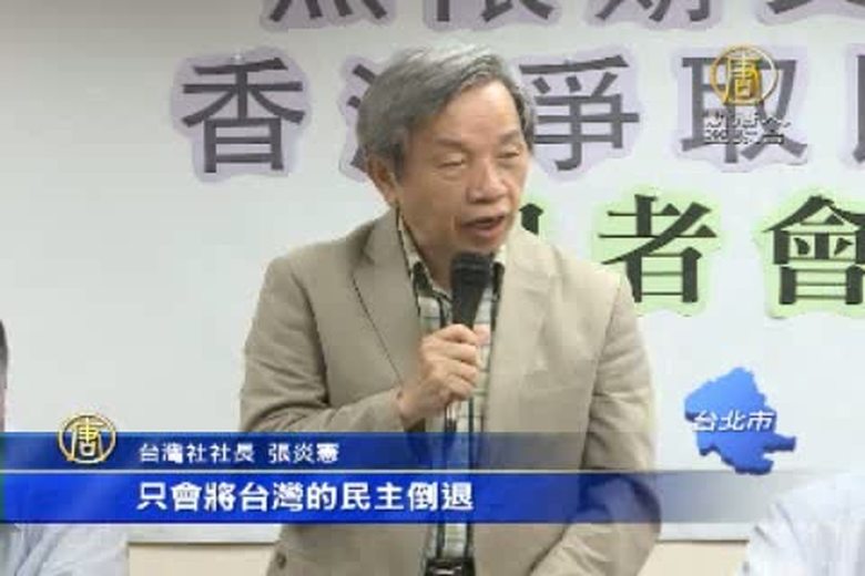 台灣各界關注香港七一遊行,中國民運人士王丹臉書上聲援香港,雖然人在美國無法到場,不過香港街頭出現王丹的人形立牌,要見證歷史。太陽花學運代表林飛帆,也說非常想加入七一遊行行列,無奈港簽無法過關。而台灣多個社團也前往香港,參加遊行 。 //asset2.ntdtv.com.tw/public/uploads/video/2014/07/02/20140702-24553130.mp4 台灣要聞|七一|香港|王丹|林飛帆|台灣社|中共|最新消息2014-07-01 22:44:03