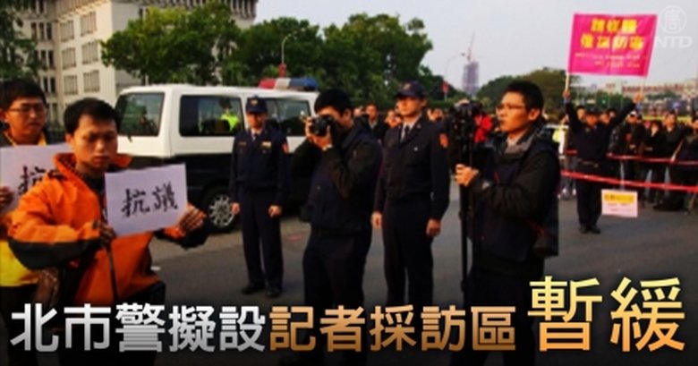 台北市警局元旦公布,未來將在民眾集會抗議現場劃設「記者採訪區」,引發限縮新聞自由的質疑,有600多位記者和公民連署反對。因為爭議實在太大,北市警今(5日)天改口表示,「採訪區」將暫緩實施。 //asset3.ntdtv.com.tw/public/uploads/video/2015/01/06/20150106-32346694.mp4 台灣要聞|媒體採訪區2015-01-05 21:43:07