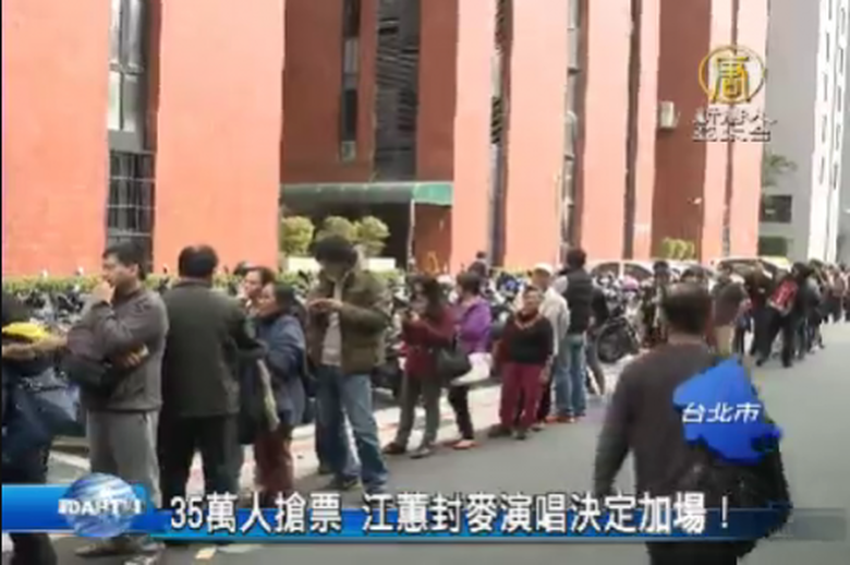 台語歌后江蕙封麥前的告別演唱會,掀起搶票大戰,甚至造成網路癱瘓。看到粉絲們辛苦買票,江蕙在臉書上表示心疼,而今天下午經紀人陳子鴻也宣布,演唱會將加場。 //asset3.ntdtv.com.tw/public/uploads/video/2015/01/07/20150107-32394687.mp4 娛樂星球|江蕙|黃牛|祝福|演唱會|搶票|最新消息2015-01-06 22:06:42