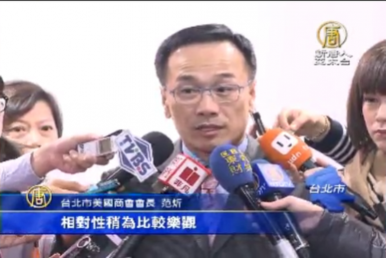 台北市美國商會發表今年度景氣調查報告,調查結果顯示,受訪企業對台灣未來五年內的商業景氣持樂觀態度,較前三年結果首度些微上揚,並且有五成企業預估會增加今年在台灣的雇用人數和投資,不過,商會仍提醒,台灣語言競爭力的弱勢。 //asset1.ntdtv.com.tw/public/uploads/video/2015/01/09/20150109-32502206.mp4 財經新聞|美國商會|競爭力|人才|台北|最新消息2015-01-08 22:16:03