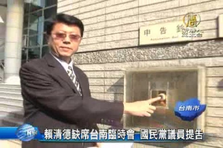 台南市議會上午召開臨時會,先前揚言司法未釐清議長涉賄選前不進議會的市長賴清德,與市府官員全員缺席,下午國民黨議員謝龍介到台南地檢署按鈴申告賴清德等瀆職。 //asset1.ntdtv.com.tw/public/uploads/video/2015/01/16/20150116-32777979.mp4 台灣要聞|賴清德|李全教|府會之爭|台南2015-01-15 21:47:24