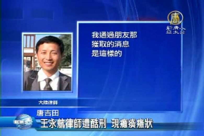 大連維權律師王永航,因為代理多起法輪功學員案件,被當局秘密判刑7年,日前,有消息透露,王永航在監獄中慘遭酷刑迫害,腰部以下麻木,出現癱瘓癥狀。 //asset3.ntdtv.com.tw/public/uploads/video/2015/01/16/20150116-32777960.mp4 真相中國|中國維權律師|王永航|法輪功|迫害|酷刑2015-07-29 18:42:46