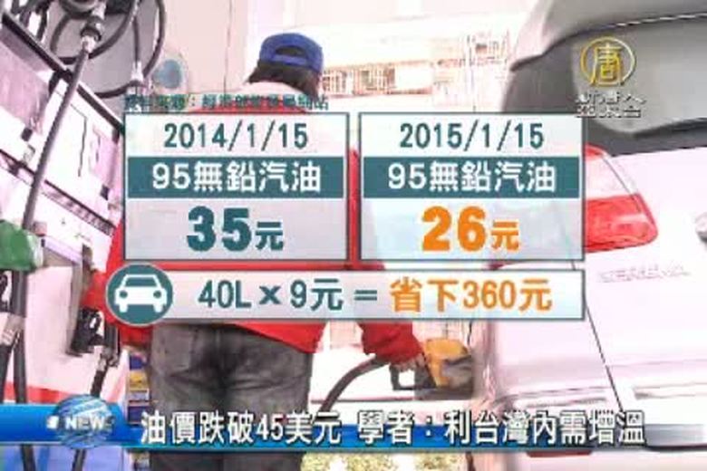 國際油價自上周跌破50美元後,再次失守45美元,向40美元大關逼近,由於石油輸出國組織OPEC成員堅持不減產,油價恐怕還有得跌。不過對於台灣的影響,學者則認為將有利內需消費需求回溫,尤其交通類別支出 大幅減少,民眾實際荷包可望增加。 //asset1.ntdtv.com.tw/public/uploads/video/2015/01/16/20150116-32777947.mp4 財經新聞|油價|梁國源|孫明德|台北2015-01-15 21:07:12
