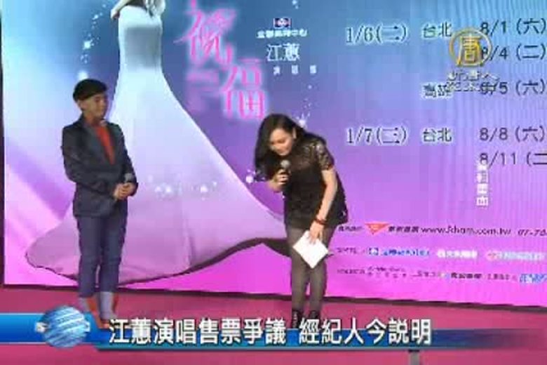 臺語歌后江蕙演唱會,決定加開9場演唱會,繼寬宏頻頻爆出售票烏龍事件後,今天(16)公布由宏碁雲端服務系統接手,但必須網路記名買票,每人限購四張。 //asset3.ntdtv.com.tw/public/uploads/video/2015/01/17/20150117-32838393.mp4 娛樂星球|江蕙|宏碁|寬宏|施振榮|最新消息2015-06-24 22:18:09