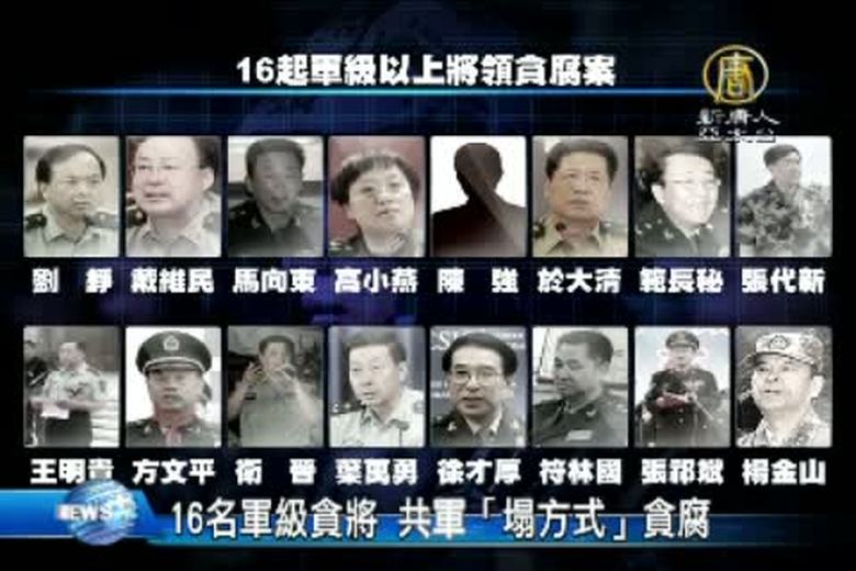 中共軍方在15號,匯總公布了2014年,16起軍級以上將領的重大貪腐案,其中有四宗是首次對外公布。中共軍隊系統“塌方式”腐敗,令外界震驚,也質疑,誰要為這支「貪腐軍隊」負責。 //asset3.ntdtv.com.tw/public/uploads/video/2015/01/17/20150117-32834284.mp4 真相中國|16名軍級貪將|徐才厚2015-01-16 21:29:59