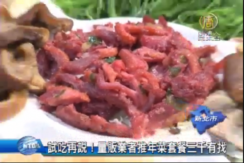 年關將近,不少家裡的婆婆媽媽已經在考慮,要怎麼準備應景年菜,量販業者推出上百道熱門年菜400元有找,還有套餐組合三千有找,要讓民眾花小錢,就能輕鬆享有過年小確幸。 //asset1.ntdtv.com.tw/public/uploads/video/2015/01/19/20150119-32893885.mp4 財經縱橫|產業新聞|民生消費|年夜飯|過年|年貨|台北2015-01-18 21:11:27