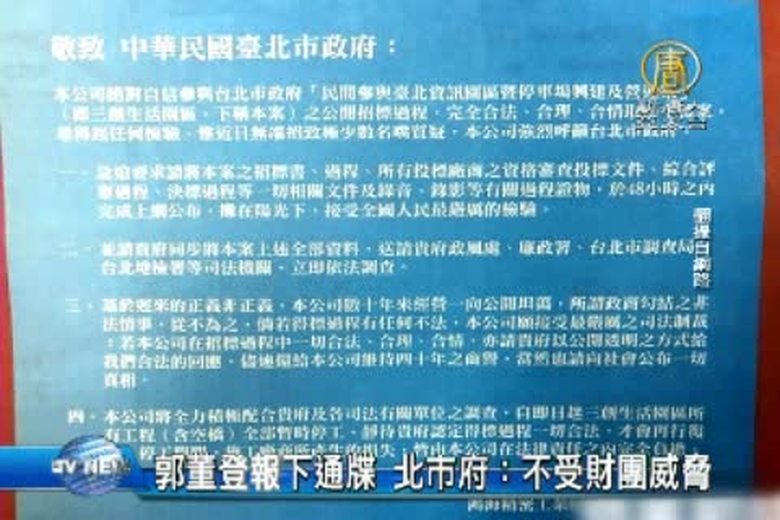 好,機場槍擊案引發關注,稍晚8點20分航警局將出面說明,我們稍後也會為您跟進。接著看到,台北市長柯文哲又槓上財團。鴻海集團今天大動作在六大報刊登頭版,要求台北市政府48小時內上網公布三創數位生活圈所有招標文件,對此,台北市長柯文哲則是怒批,北市府不是鴻海附設政府,火藥味十足。 //asset3.ntdtv.com.tw/public/uploads/video/2015/01/20/20150120-32919562.mp4 台灣要聞|柯文哲|三創|鴻海|郭台銘|郭董|台北|最新消息2015-01-19 22:53:02