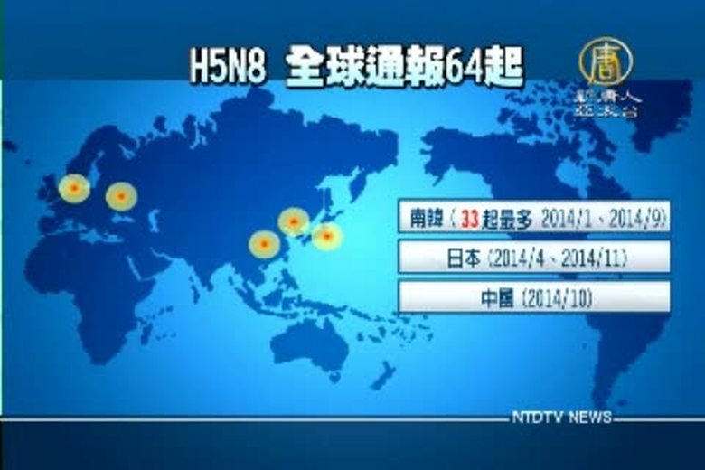 對雞、鴨、鵝類屬高致病性的H5N8型禽流感病毒全球蔓延,去年傳出病例的美國和德國疫區擴大,甚至連動物園都遭殃,而日本被驗出「H5型」禽流感病毒後,也緊急撲殺了數萬雞隻,加強防疫。 //asset2.ntdtv.com.tw/public/uploads/video/2015/01/21/20150121-32966945.mp4 台灣要聞|禽流感|H5N8|台灣|中國|南韓2015-01-20 21:44:02
