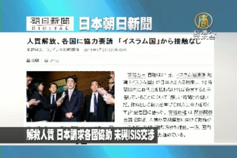 伊斯蘭國激進組織ISIS要求日本,在明天下午前,交付人質贖金,震驚國際。日本外交部長案田文雄剛從法國回來,向首相安倍報告,和各國求援的情況;目前,日本並未與ISIS有聯繫。 //asset3.ntdtv.com.tw/public/uploads/video/2015/01/23/20150123-33083645.mp4 國際聚焦|伊斯蘭國|激進份子|日本|後藤健二|人質2015-01-22 21:40:31