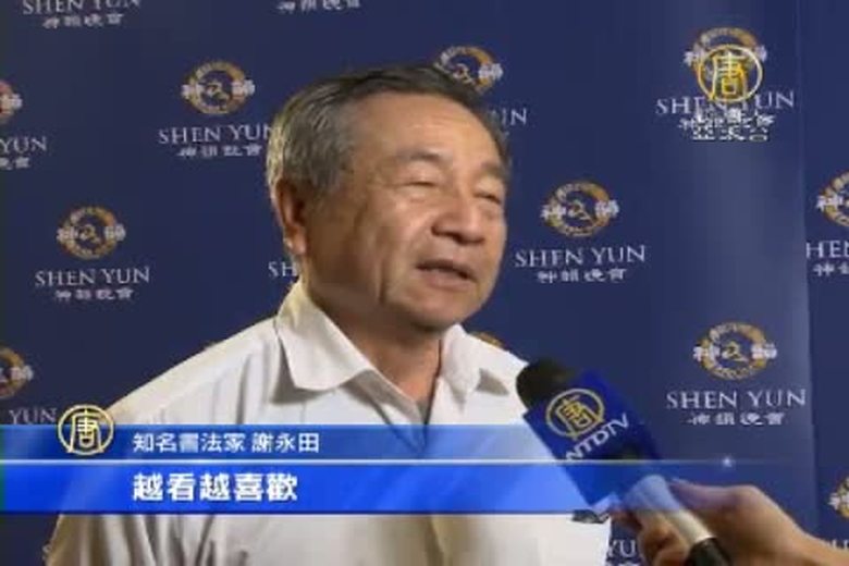 接下來關心神韻藝術團全球巡迴演出的消息,曾在海內外獲獎無數的名書法家謝永田,在看了神韻紐約藝術團在台南的首場演出之後,意猶未盡,第二天再度前來觀賞,他說他今年72歲,沒看過這麼精彩的節目,他相信,是神的力量,將神韻節目有如此巨大的內涵傳達給人,他不知道要如何形容神韻的美好,希望每個人都能親自領會。 //asset2.ntdtv.com.tw/public/uploads/assets/2015/03/15/2015-03-15-55057d2f2176b.mp4 神韻報導|神韻紐約藝術團|謝永田|台南2015-03-15 20:38:14