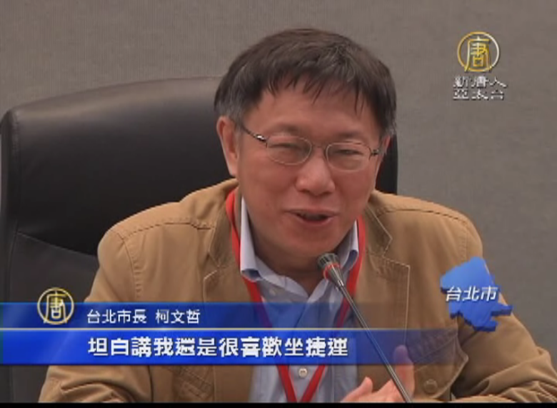 台北市長柯文哲昨天晚間搭捷運返家,被民眾發現並拍照貼上網路,柯文哲表示,他還是很喜歡搭捷運,並且認為這樣神出鬼沒,也是滿安全的。 //asset1.ntdtv.com.tw/public/uploads/assets/2015/03/16/2015-03-16-5506e331d62e5.mp4 台灣要聞|柯文哲|安全|捷運|台北機廠|全區保留2015-03-16 20:48:17