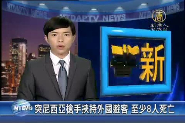為您插播最新消息。半島電視台快訊報導,北非突尼西亞議會大樓今天遭到3名槍手攻擊,多名外國遊客遭挾持,至少8名外國遊客死亡。 //asset1.ntdtv.com.tw/public/uploads/assets/2015/03/18/2015-03-18-55098ec56b4c7.mp4 2015-03-18 20:48:12