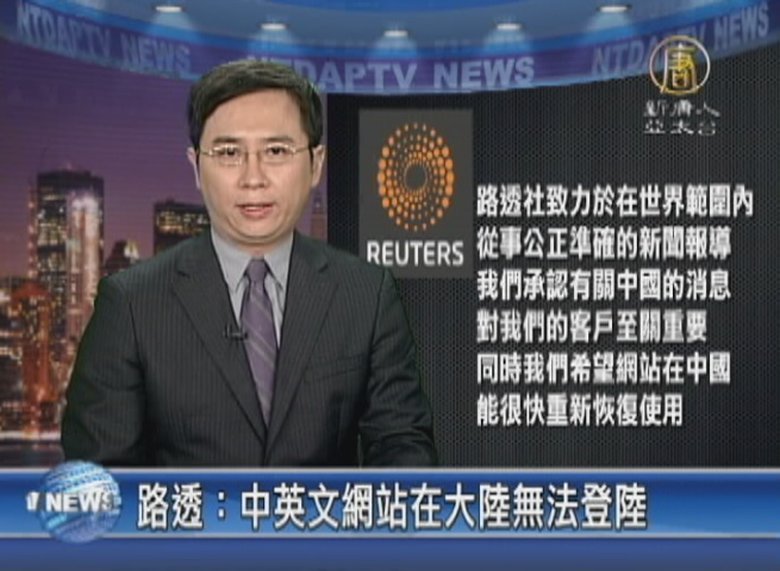 接下來帶您關心,總部設在英國的「路透社」,昨天,3月20號,發表一份報告說,他們的中、英文網站在中國大陸無法登入,目前不清楚不能登入的原因,中共當局也沒有回應路透社的書面質詢。 //asset2.ntdtv.com.tw/public/uploads/assets/2015/03/21/2015-03-21-550d7dc73c676.mp4 中英文網站|路透2015-03-21 21:19:38