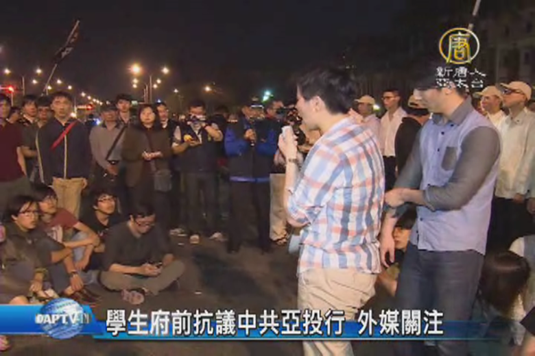 那麼對於台灣加入亞投行的爭議,黑色島國青年陣線等團體,昨天晚間試圖衝撞總統府,遭到警方多波趨離,學生喊出「一帶一路,送你上路」的口號,反對台灣政府倉促加入由中共主導的亞投行。 //asset3.ntdtv.com.tw/public/uploads/assets/2015/04/01/2015-04-01-551c029596c2a.mp4 亞投行|總統府|抗議|警力|馬英九|台北2015-04-01 20:04:26