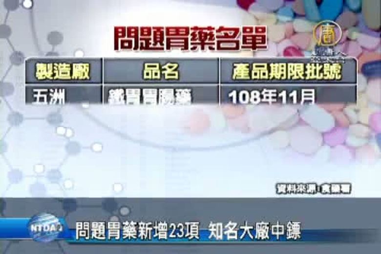 食藥署上午公布最新問題胃藥名單,發現多達23項胃藥,用來當賦形劑的「碳酸鎂」、「碳酸鈣」沒取得原料許可。食品級雖然並不違害人體,但卻違反藥事法規 定,包括「金十字酵素胃腸藥」、「鐵胃」、「易而善」等知名胃藥都上榜。食藥署要求藥廠回收,通路也得在22日前全面下架,否則開罰6到30萬元罰鍰。 //asset3.ntdtv.com.tw/public/uploads/assets/2015/04/18/2015-04-18-5532519b0c19f.mp4 胃藥|食藥署|碳酸鎂|碳酸鈣2015-04-18 20:40:49