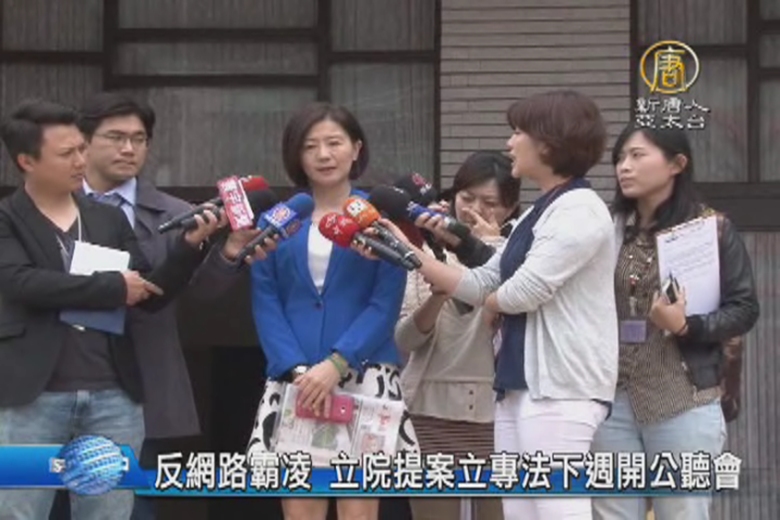 拒絕網路霸凌,其實歐盟在二○○九年的時候,就已經與 包括臉書、推特、谷歌、YouTube等十七個社群網站簽訂協議,保護青少年隱私,確保網路安全, 也將每年二月的第二個星期二為網路安全日,希望喚起社會對網路霸凌問題的關注。曾經擔任兒福聯盟執行長的立委王育敏,也表示將推動修法。 //asset2.ntdtv.com.tw/public/uploads/assets/2015/04/24/2015-04-24-553a4f3fac9aa.mp4 楊又穎|Cindy|彭作奎|網路霸凌2015-04-24 20:11:27