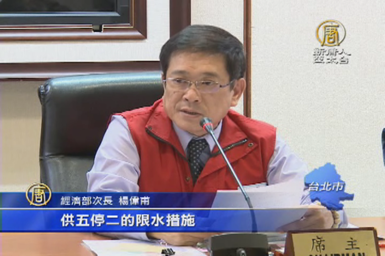 繼續來關心限水問題。高雄的水情嚴峻,經濟部今天召開旱災緊急應變小組工作會議,決定高雄5月4日開始,實施「供5停2」第三階段限水措施。這是高雄史上第一次進入三階限水,預估96.5萬戶,256萬人會受到影響,經濟部次長楊偉甫表示,未來只要高屏溪水位升高,限水就暫緩,並嚴密監控水情變化。 //asset1.ntdtv.com.tw/public/uploads/assets/2015/04/24/2015-04-24-553a4ea6a0cad.mp4 限水|三階段限水|高雄限水|抗旱|楊偉甫2015-04-24 20:05:41