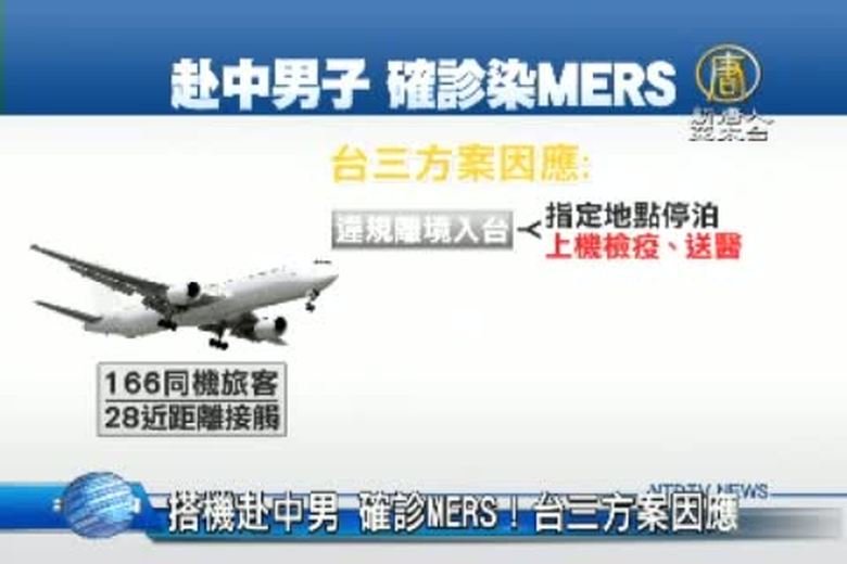 好,這名從南韓搭飛機赴中國的男子,確診感染MERS,而同機上還有166人,之後也可能會入境台灣;台灣疾管署今天公布了三方案因應。第一種情況,如果接獲通報,旅客違規離境,要進入台灣,就會要求飛機在指定地點停泊,並派人上機檢疫,將接觸者送醫;第二種情況是,接觸者在台灣機場被攔截,針對無症狀者,會要求自主管理到6月9日,有症狀者送醫;第三種情況是,接觸者已經進入台灣社區,針對無症狀者,會要求自主管理到6月9日,有症狀者送醫,進一步檢驗。 //asset3.ntdtv.com.tw/public/uploads/assets/2015/05/29/2015-05-29-55686f1a45cec.mp4 MERS|中東呼吸症候群|機場|防疫2015-05-29 20:04:56