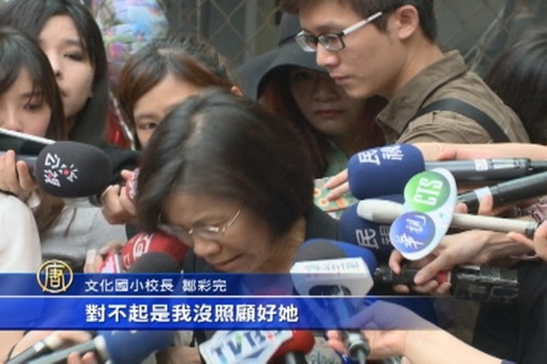 今天是女童割喉案發生後的第1個上學日,劉小妹妹就讀的文化國小,校長今天首度露面,她兩度鞠躬向受害女童雙親致歉,哽咽地表示,沒有照顧好女童。 //asset1.ntdtv.com.tw/public/uploads/assets/2015/06/01/2015-06-01-556c6518a41e0.mp4 割喉案|文化國小|校長|校園安全|社工師2015-06-01 20:05:48