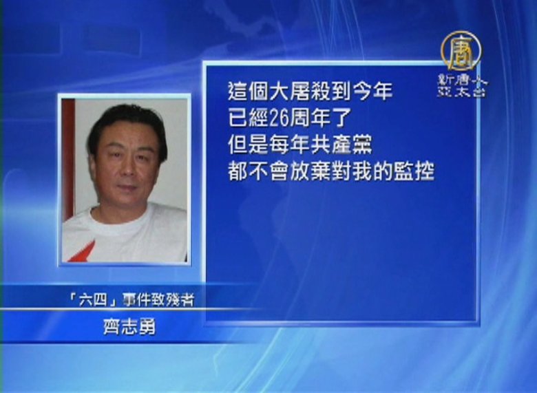 「六四」事件26周年之際,中共當局再次加大力度,嚴控民間的任何追思悼念活動。這兩天大陸各地的維權、異見人士很多被「旅遊」或被軟禁、監視。 //asset2.ntdtv.com.tw/public/uploads/assets/2015/06/03/2015-06-03-556f20cc65a8f.mp4 六四|齊志勇|馬曉明|天安門|悼念|趙紫陽|鮑彤2015-06-03 20:29:14