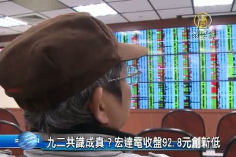 九二共識成真?宏達電收盤92.8元創新低