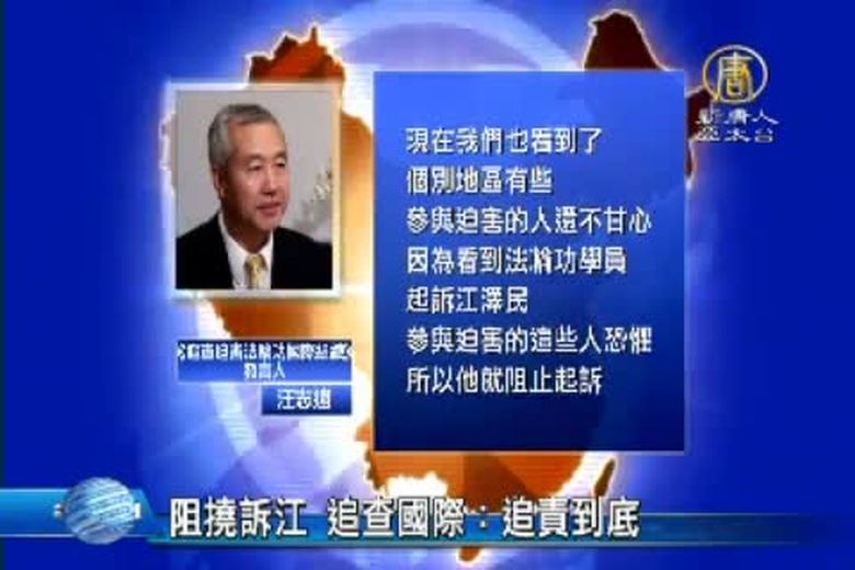 歡迎回來。由於在16年前,對法輪功修煉團體發起了滅絕性的迫害,中共前黨魁江澤民,正面臨前所未有的大規模民眾控告,不過,一些地區也出現了阻礙甚至抓捕控告江澤民的法輪功學員的現象,對此,《追查國際》組織日前發表通告表示,已經對涉嫌犯罪的機構和責任人,進行立案調查。 //asset3.ntdtv.com.tw/public/uploads/assets/2015/06/06/2015-06-06-5572f7601eceb.mp4 追查國際|訴江|江澤民|法輪功|迫害2015-07-31 16:33:25