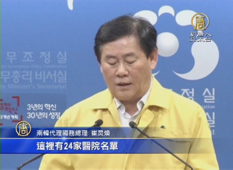 新聞一開始,首先帶您來關注,南韓MERS疫情再延燒,今天(6/7)再增加14起確認病例,病例總數來到64例,並有第5位MERS感染患者死亡。南韓代理國務總理崔炅煥上午也召開記者會,公布曾發生MERS疫情或治療過MERS病患的24家醫院名單。 //asset2.ntdtv.com.tw/public/uploads/assets/2015/06/07/2015-06-07-55744f4449eb6.mp4 MERS|南韓|崔炅煥2015-06-07 20:44:16