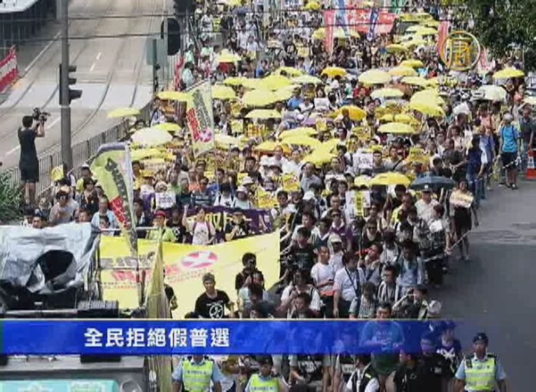 鏡頭轉到香港,面對政改表決日,香港民間人權陣線等十多個團體,星期日舉行「全民否決政改」遊行,市民說,中共言而無信,他們不要假普選,請看我們香港前線記者報導。 //asset1.ntdtv.com.tw/public/uploads/assets/2015/06/15/2015-06-15-557edf73415ea.mp4 政改|假普選|香港|遊行2015-06-15 20:24:32