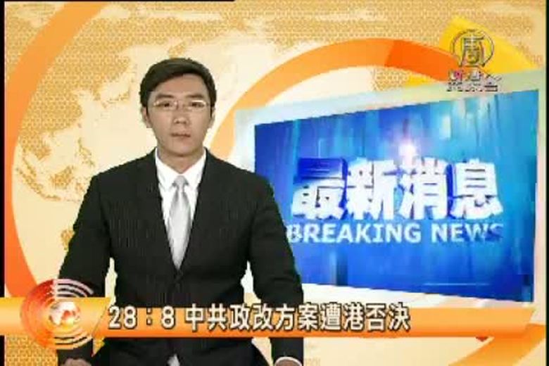 香港2017行政院長官產生辦法決議案,經過二天的審議,今天中午進行記名表決,在部分建制派退場的情況下,28票反對,8票贊成,1人未投票,中共人大框架下的政改方案,遭到否決。 //asset3.ntdtv.com.tw/public/uploads/assets/2015/06/18/2015-06-18-5582cda27f6b3.mp4 政改|香港|表決|雨傘運動|真普選2015-06-18 20:05:20