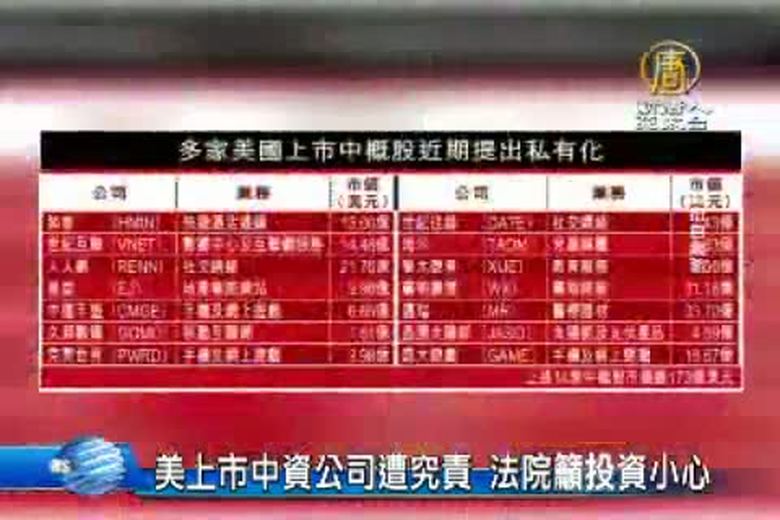 鏡頭轉到美國,近來,在美國上市的中資公司,正以前所未有的速度撤離美國股市,然而,卻因為會計和信息披露問題,導致股東損失了數十億美元。美國投資者在法庭上,追究中資公司責任時大多遇到阻礙,因為,很多中資公司直接關門走人,放棄美國市場,不理會美國法院的裁決,法院指定接管人提醒民眾,投資中資企業的風險。 //asset2.ntdtv.com.tw/public/uploads/assets/2015/06/23/2015-06-23-558969ca54791.mp4 中資|美國上市|投資風險|法院2015-06-23 20:30:11