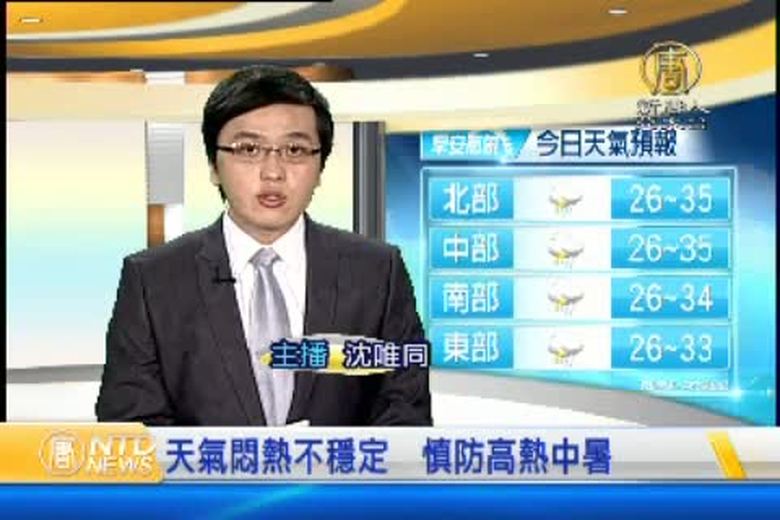 最近天氣真的很熱,氣象局表示,今天台北最高溫達到攝氏35.4度, 6月還沒過完,高溫超過35度就已經有13天,追平歷史紀錄,氣象局說,下週太平洋高壓增強天氣會更加穩定,有機會再打破歷史紀錄。 //asset1.ntdtv.com.tw/public/uploads/assets/2015/06/23/2015-06-23-55896afde906d.mp4 高溫|高溫35度|旱災|氣象局2015-06-23 20:47:14