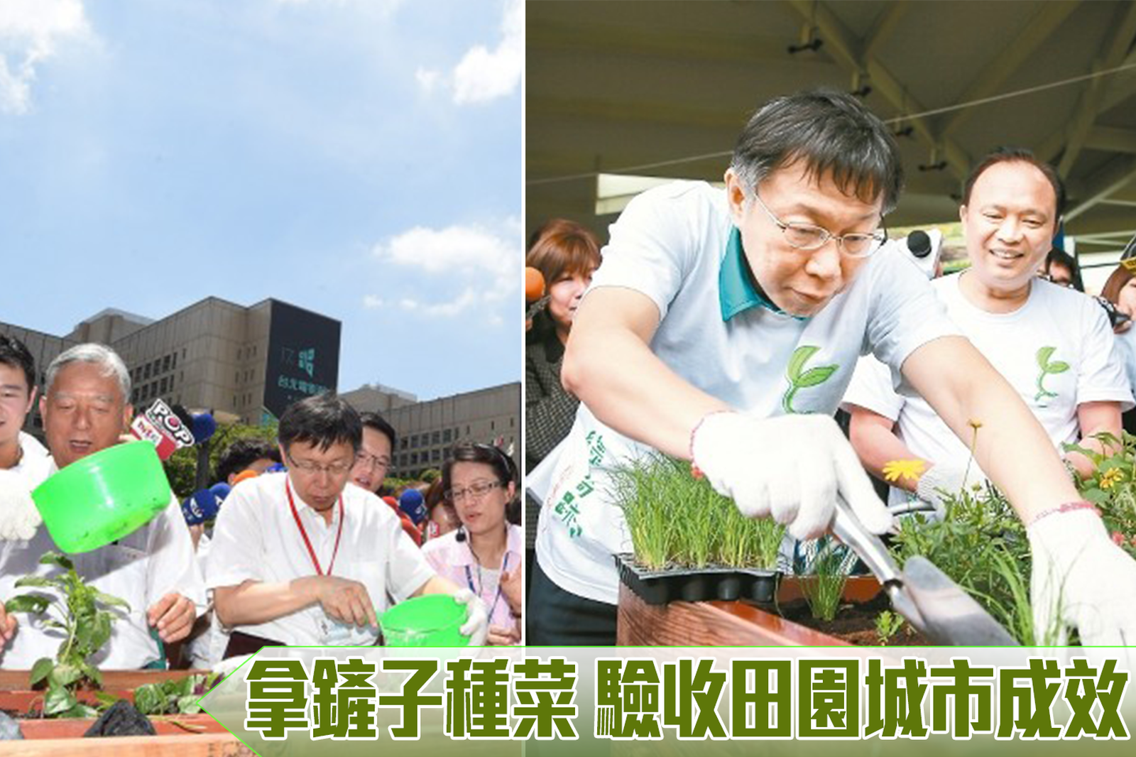 柯文哲拿鏟子種菜 驗收田園城市成效