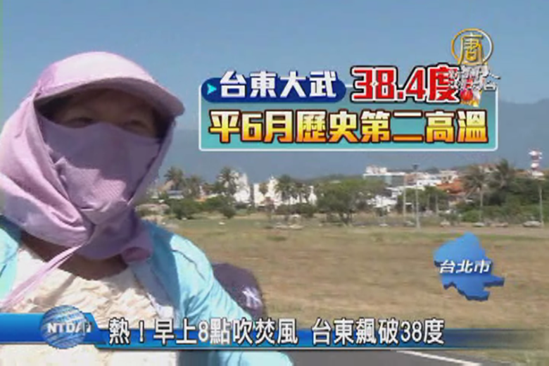 全台熱壞了,今天(6月26日)各地連破好幾項熱記錄,先是台北15天熱破35度再創歷史記錄,嘉義與基隆都分別創高溫,飆破36度,台東今天最高來到38.4,連氣象局的首頁,也第1次用紅字,大大寫上一個扭曲的「熱」,提醒大家注意高溫。 //asset3.ntdtv.com.tw/public/uploads/assets/2015/06/26/2015-06-26-558d58a0c0aa3.mp4 高溫|焚風|氣象2015-06-26 20:46:49