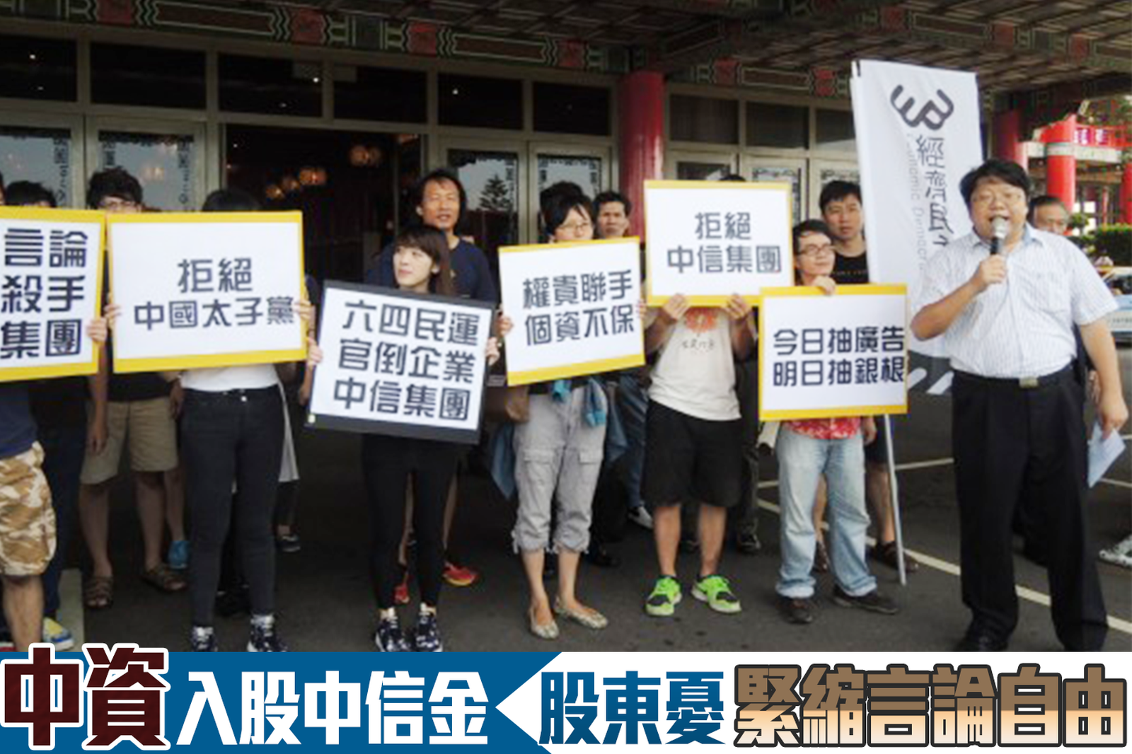 再來看到,台灣中信金控 今天(29日)召開股東會,日前宣布與中國集團策略聯盟,民間團體在場外抗議,也引來股東舌戰,質疑這項策略會造成台灣民眾個資外洩等問題,公開反對中資入股。 //asset1.ntdtv.com.tw/public/uploads/assets/2015/06/29/2015-06-29-55914f4b9f5f4.mp4 中信金|中國信託|中資|台壽保|個資2015-06-29 20:28:51