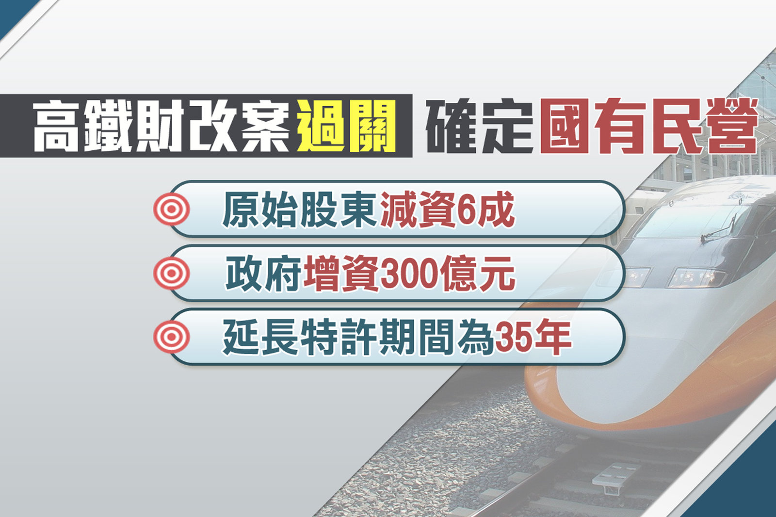 高鐵財改案過關 確定「國有民營」