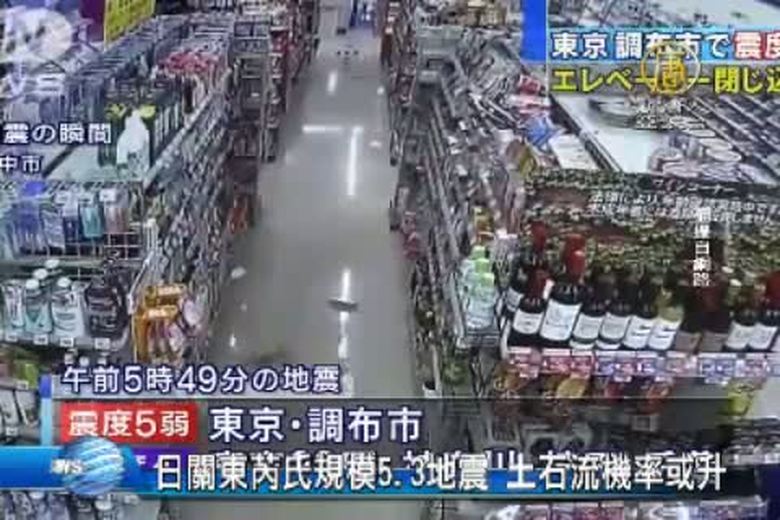 另外,今天上午,日本當地時間5點49分,日本關東地區發生芮氏規模5.3的地震,震央位於東京灣,震源深度70公里。這場地震歷時大約10秒鐘,監視器拍下地震當時的畫面,商店內的貨架明顯搖晃。而受到地震的影響,關東部分地區的電車暫時停止營運。NHK報導,這次地震雖然沒有引發海嘯,但由於近日暴 雨,在加上發生地震,可能會增加局部地區發生土石流的風險。 //asset1.ntdtv.com.tw/public/uploads/assets/2015/09/13/2015-09-13-55f42a11c8e6e.mp4 東京|關東|地震|5.3|日本2015-09-12 20:09:41