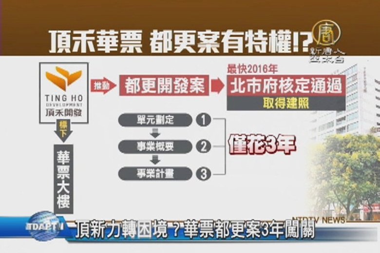 財經新聞焦點,帶您看到,頂新集團旗下頂禾開發,在4年前砸下超過46億元買下原中華票券大樓,積極推動都更開發案,現在傳出,最快預計明年,就可以通過台北市府核定、取得建照,對此,引發都更業者不滿,表示頂新,根本是搭特快車闖關。 //asset3.ntdtv.com.tw/public/uploads/assets/2015/09/14/2015-09-14-55f56ec09d1ab.mp4 頂新|頂禾|中華票券大樓|頂禾華票案|都更案2015-09-13 20:47:23