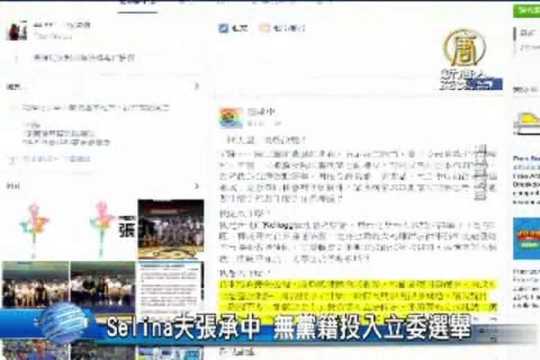Selina夫張承中 無黨籍投入立委選舉