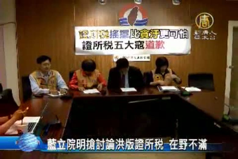 立法院明天將開議,國民黨團發出「甲級動員」,要求黨內委員務必到場,要處理洪秀柱提的證所稅改革案,今天,台聯和多個政黨召開記者會強調,執政黨對證所稅政策搖擺不定,導致稅收短少。 //asset3.ntdtv.com.tw/public/uploads/assets/2015/09/15/2015-09-15-55f6cc569fa75.mp4 2016總統大選|立法院|洪秀柱版|證所稅|國民黨|台聯2015-09-14 20:07:16