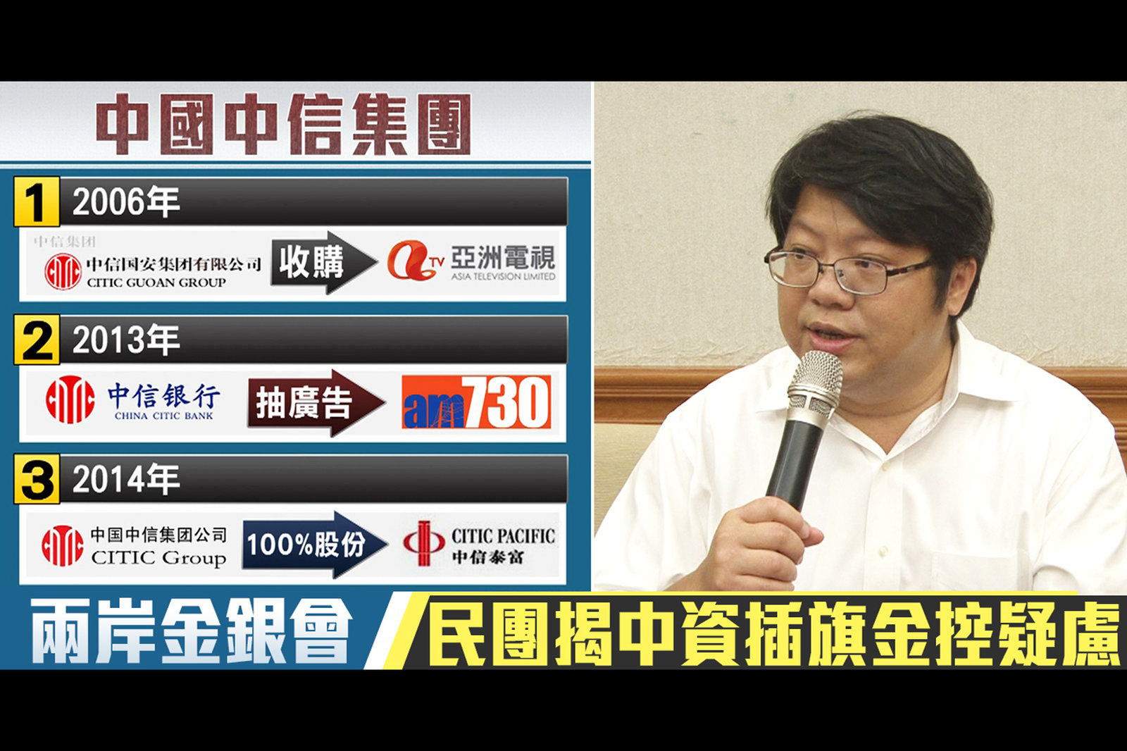 兩岸舉行第五次的金融監理平台,今天民間團體召開記者會,反對中國中信集團,要入股中信金,專家指出,中國中信集團,是由中共國務院控制的國家戰略企業,成立以來,旗下企業集團,不斷在各國進行收購,甚至干涉言論自由。 //asset1.ntdtv.com.tw/public/uploads/assets/2015/09/15/2015-09-15-55f6cc309a83a.mp4 金銀會|金銀五會|金管會|中信金|中信集團2015-09-14 20:05:25