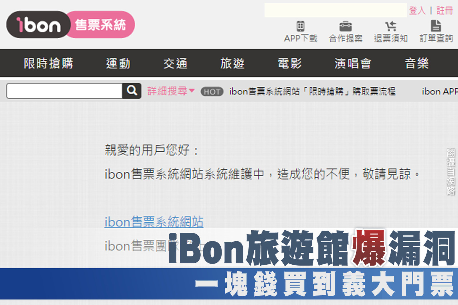iBon旅遊館爆漏洞 一塊錢買到義大門票