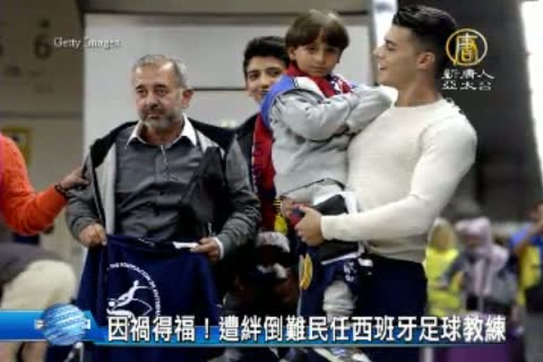 難民爸爸被絆倒 邀聘西班牙足球教練