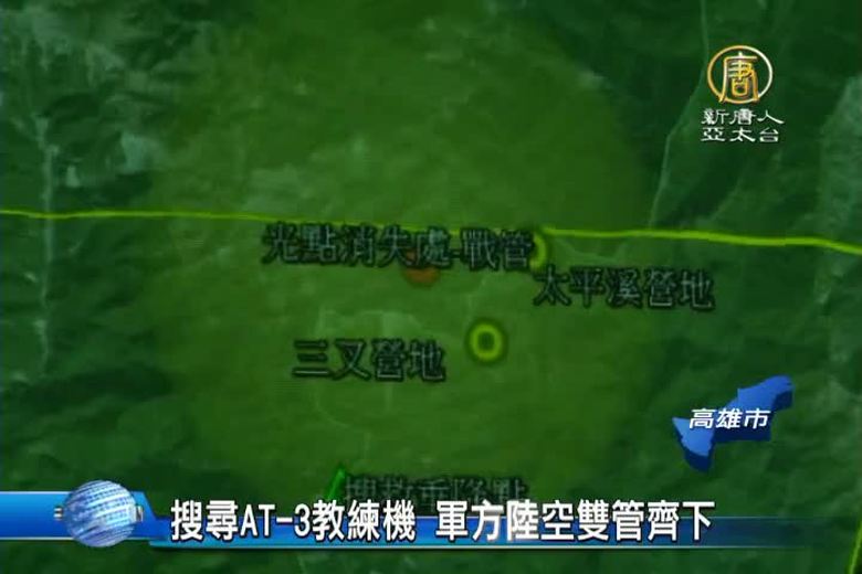 再來關心,空軍AT3 教練機的搜救情況。事發一天,軍方塔台到目前還沒收到失聯 AT3信標器(URT33)訊號,無法標定正確位置。國防部決定雙管齊下,空中派出直升機搜尋,地面由搜救部隊趕往失聯地點救援,但到傍晚為止,沒有進一步發現。 //asset1.ntdtv.com.tw/public/uploads/assets/2015/09/23/2015-09-23-560296e5a9114.mp4 AT-3教練機|失聯|王勁鈞|黃俊榮|高雄2015-09-23 20:09:41